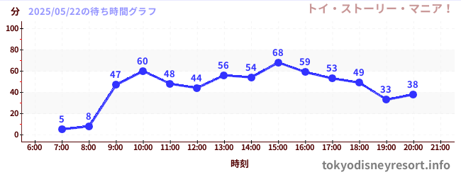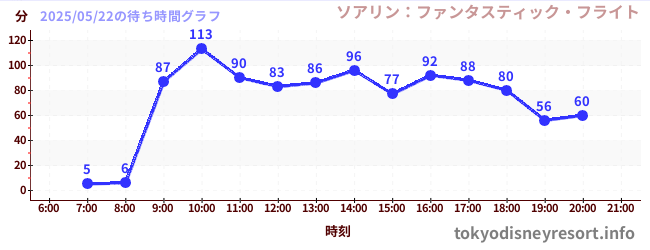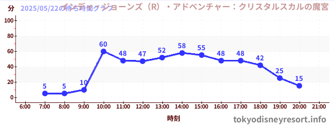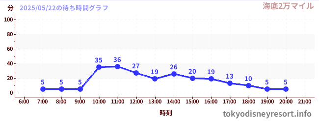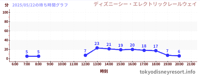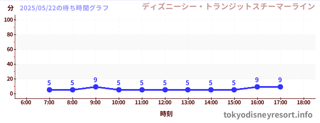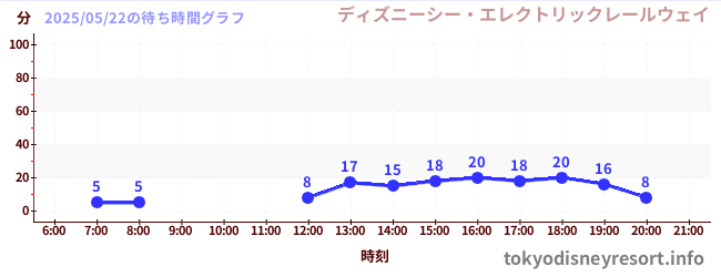 ディズニーシーの2025年05月22日の待ち時間